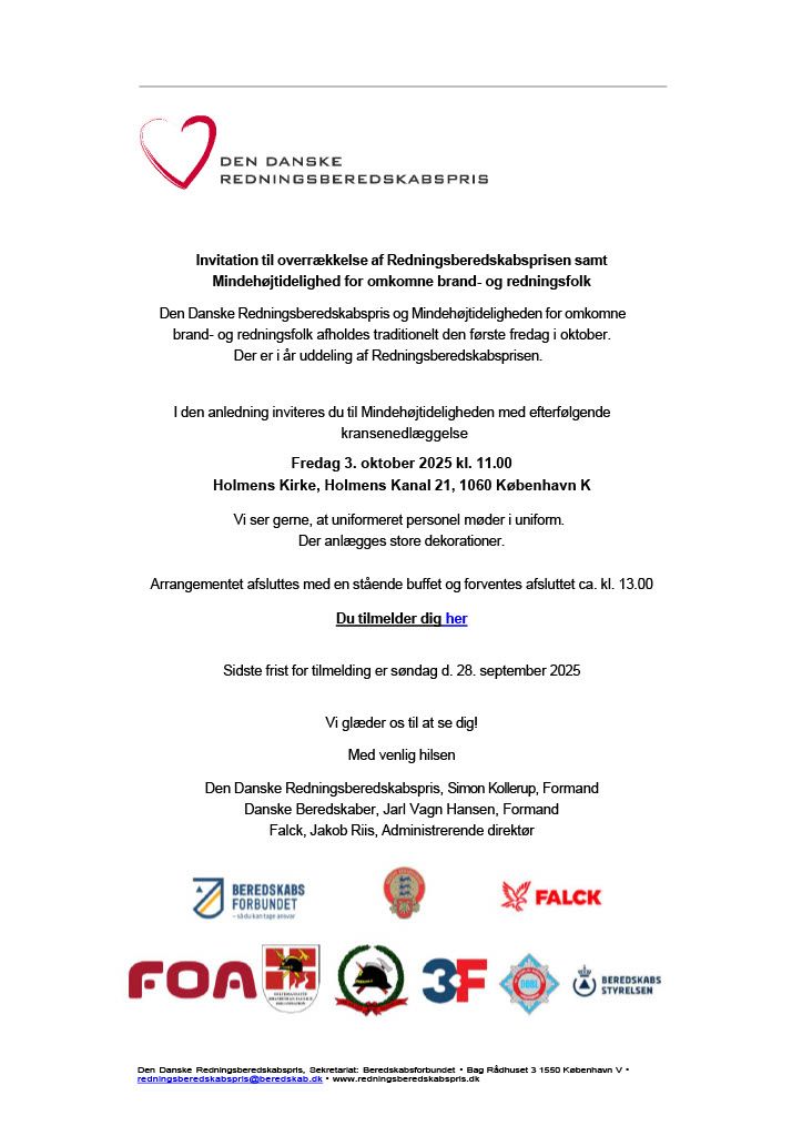 Invitation til Redningsberedskabspris og Mindehøjtidelighed 2025